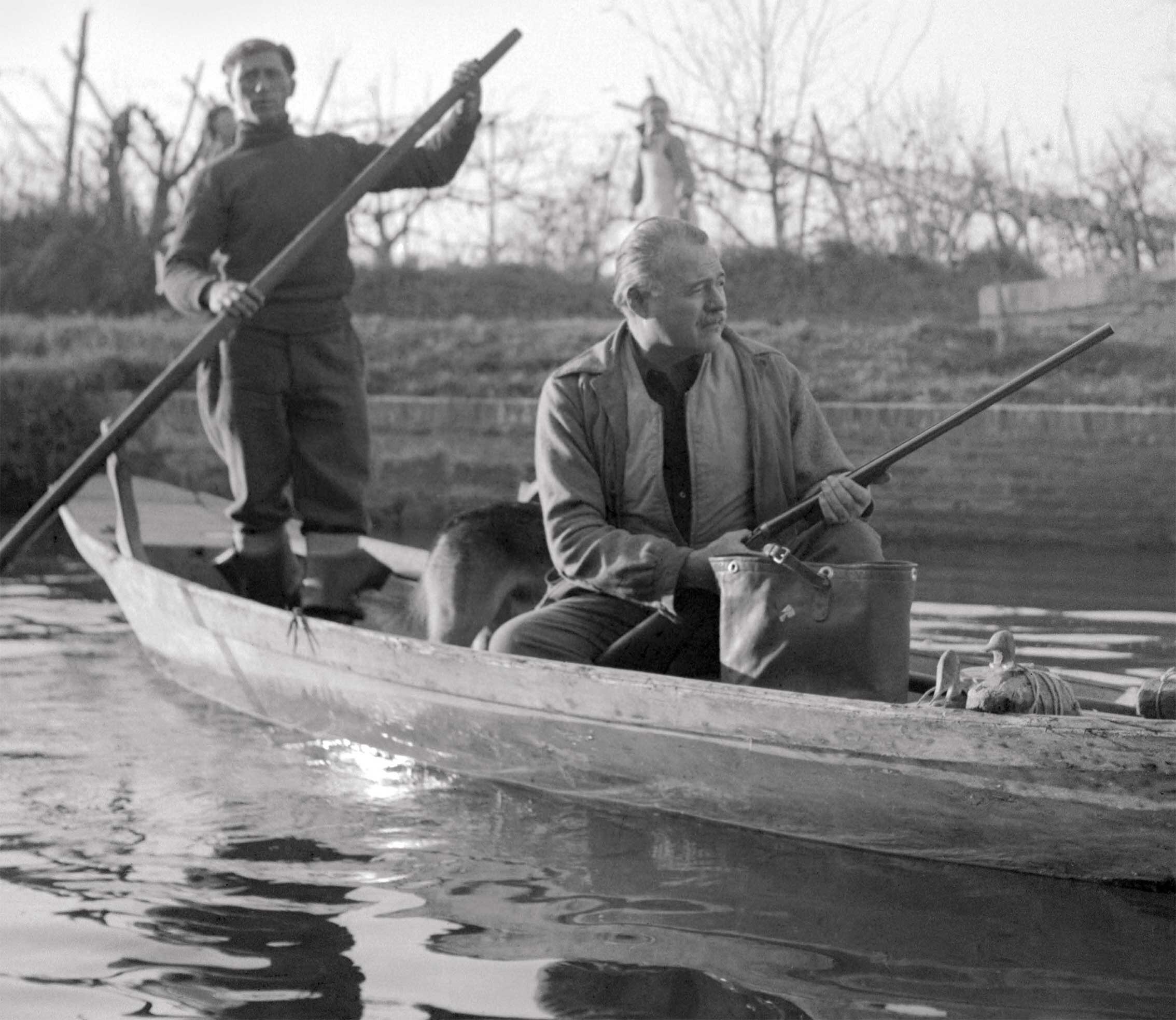 1940s – Then two hundred years after Pietro Longhi and four hundred years after Carpaccio – we find Hemingway on the lagoon, shooting ducks. They say that Hemingway was actually a terrible shot. I don’t know if that’s true or not. But he certainly loved duck hunting on the lagoon. In November 1948 he spent the month at Locanda Cipriani on Torcello. His days involved duck hunting, at the crack of dawn, writing at his special desk and drinking copious amounts of red wine and whisky. During that month in 1948 he wrote the novel ‘Across the River and into the Trees’. The book is a love story, an elegy, to Northern Italy, the lagoon and a young, aristocratic woman for whom there would be no happy ending. The book received very poor reviews and Hemingway was so upset that he wrote ‘The Old Man and the Sea’ immediately afterwards in an attempt to salvage his reputation. He succeeded.