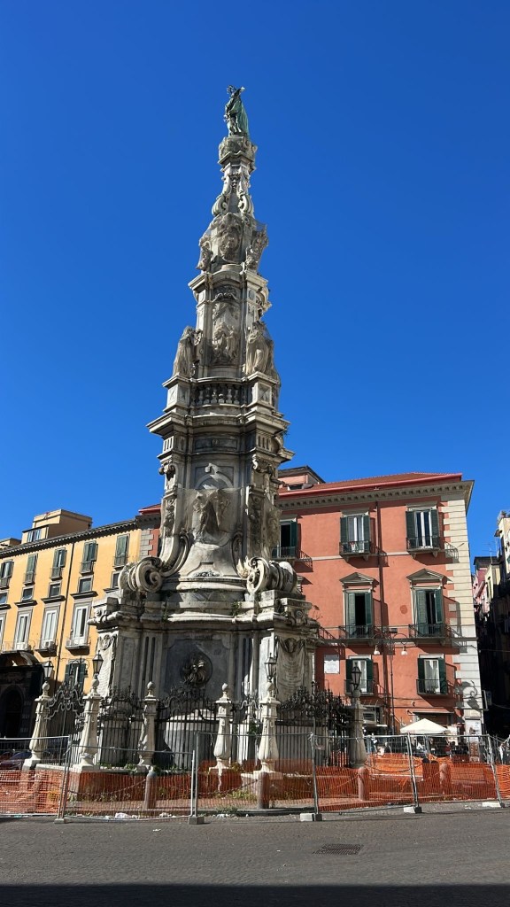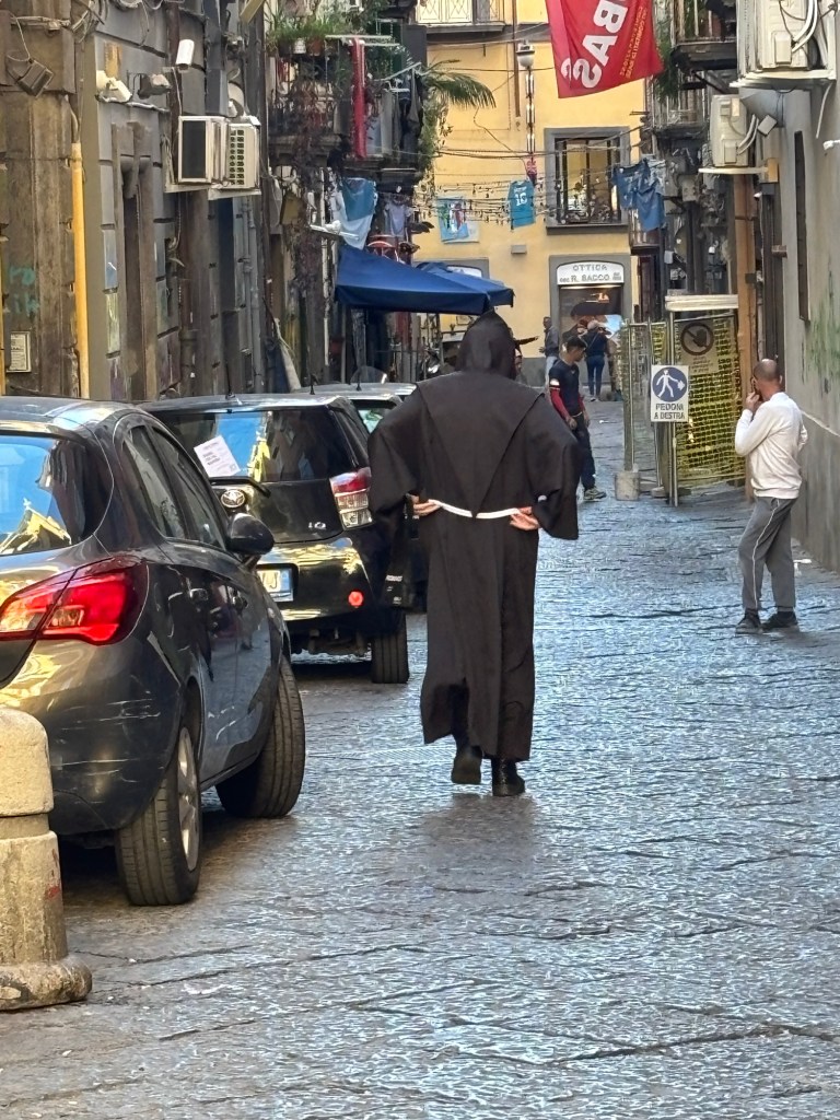 Naples was originally a Greek city – Neo-polis meaning New City. Neapolitan people are the people of the Neo-polis. The Greeks established their new city here in the 4th century BCE. After the Greeks came the Romans. Then the Normans, French and Spanish. Naples was the Capital City of the Kingdom of Naples. A city of art, culture and drama. Especially drama, often closely related to the activities of the church. There’s more than 500 churches in Naples.