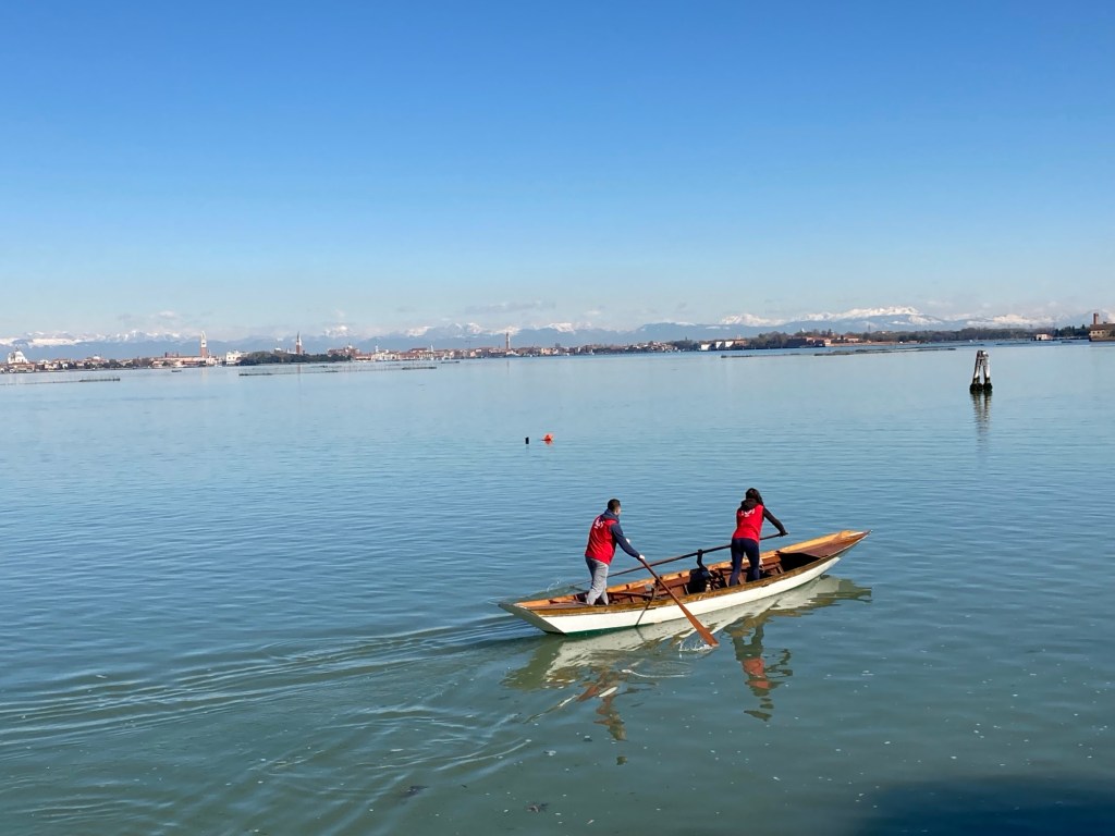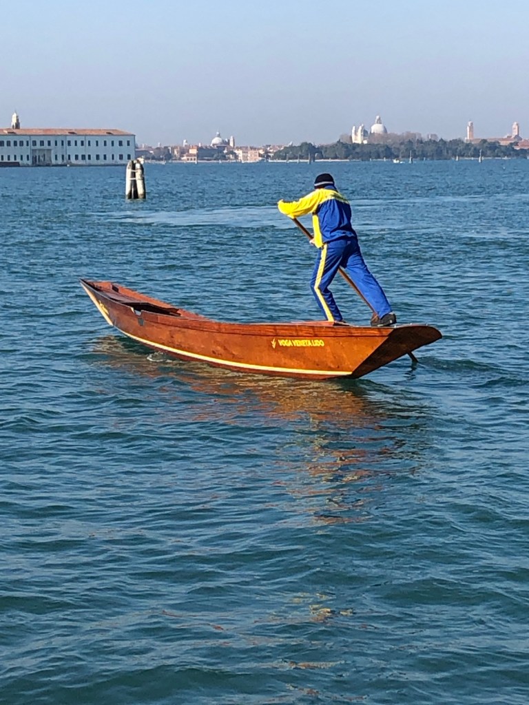I particularly like this painting showing the Women’s Rowing races in the mid 18th century. I’m a little less keen on the voyeuristic ‘Casanova characters’ lasciviously watching the races from their private boats. However the detail of the boats, colour of the costumes and exceptional depiction of the scene is captivating. Gabriele Bella manages to achieve movement, determination and a dynamic racing spirit in the rowers. Four boats each rowed by two women compete on the Grand Canal to win their race. The flat bottomed boats look like a typical Venetian ‘sandolo’ still used in Venice today for racing and fishing. These boats are light weight and easy to manoeuvre in the shallow waters of the lagoon.