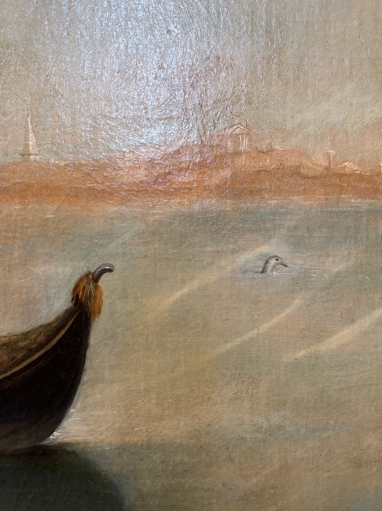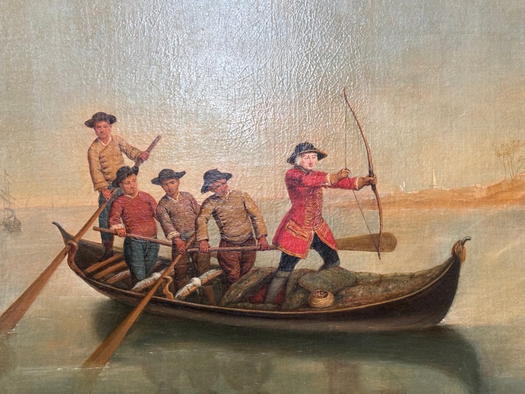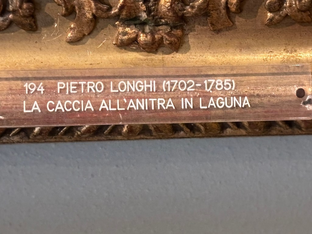 AND FINALLY – A favourite painting of mine – also at the Querini – by Pietro Longhi ‘Duck Hunting on the Lagoon’ is a joy. Look carefully in the third photo – it’s the unfortunate duck!