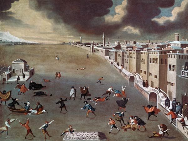 However this methodology doesn’t always work. One of Bella’s most famous paintings depicts the freezing over of the Venetian Lagoon in 1708. This delightful picture shows people skating on the lagoon. But Bella wasn’t born until 1730. Let’s assume that his painting career began when he was 18 years of age, that would have been 1748, 40 years after the Venetian lagoon actually froze over. So this painting must have been done partly from imagination and partly using accounts of parents and perhaps grandparents.