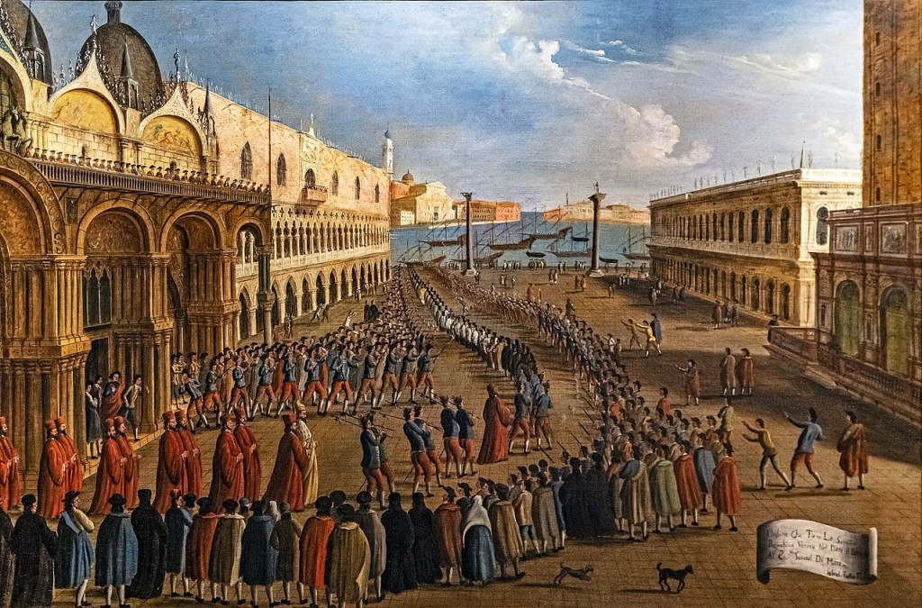 Gabriele Bella carefully and assiduously painted the pomp and ceremony of Venice from about 1750 to 1780. He’s probably the most important chronicler of the city of Venice that very few people know. This was the age of the Grand Tour in Italy, a time when the first waves of tourists were arriving to discover for themselves the art, beauty and entertainment opportunities of the Serenissima. Visitors found a vibrant cultural hub of artists, musicians, theatres and concerts. A stroll through St Mark’s Square might have included a chance encounter with Vivaldi, Casanova or perhaps Tiepolo or Canaletto. The Caffe Florian opened its doors twenty years earlier and was the place for a delicious hot chocolate drink, all the rage at the time. It was in this environment of elegance and social engagements that the artist Gabriele Bella was active. He lived in Venice from 1730-1799.
