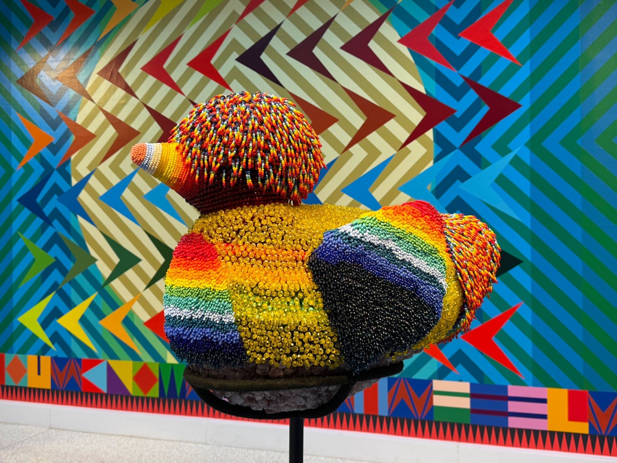 Paula Nicho’s intricate style, showing textiles + colours of her native Guatemala – Jeffrey Gibson, USA – right