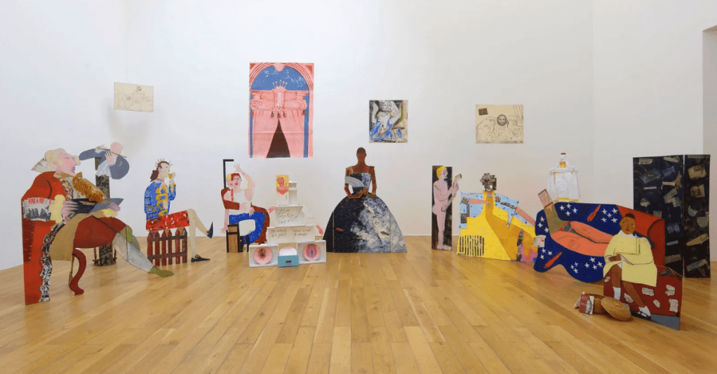 Lubaina Himid – left to right: A Fashionable Marriage (1984-86) Le Rodeur: Exchange (2016) Six Tailors (2019) Credits below