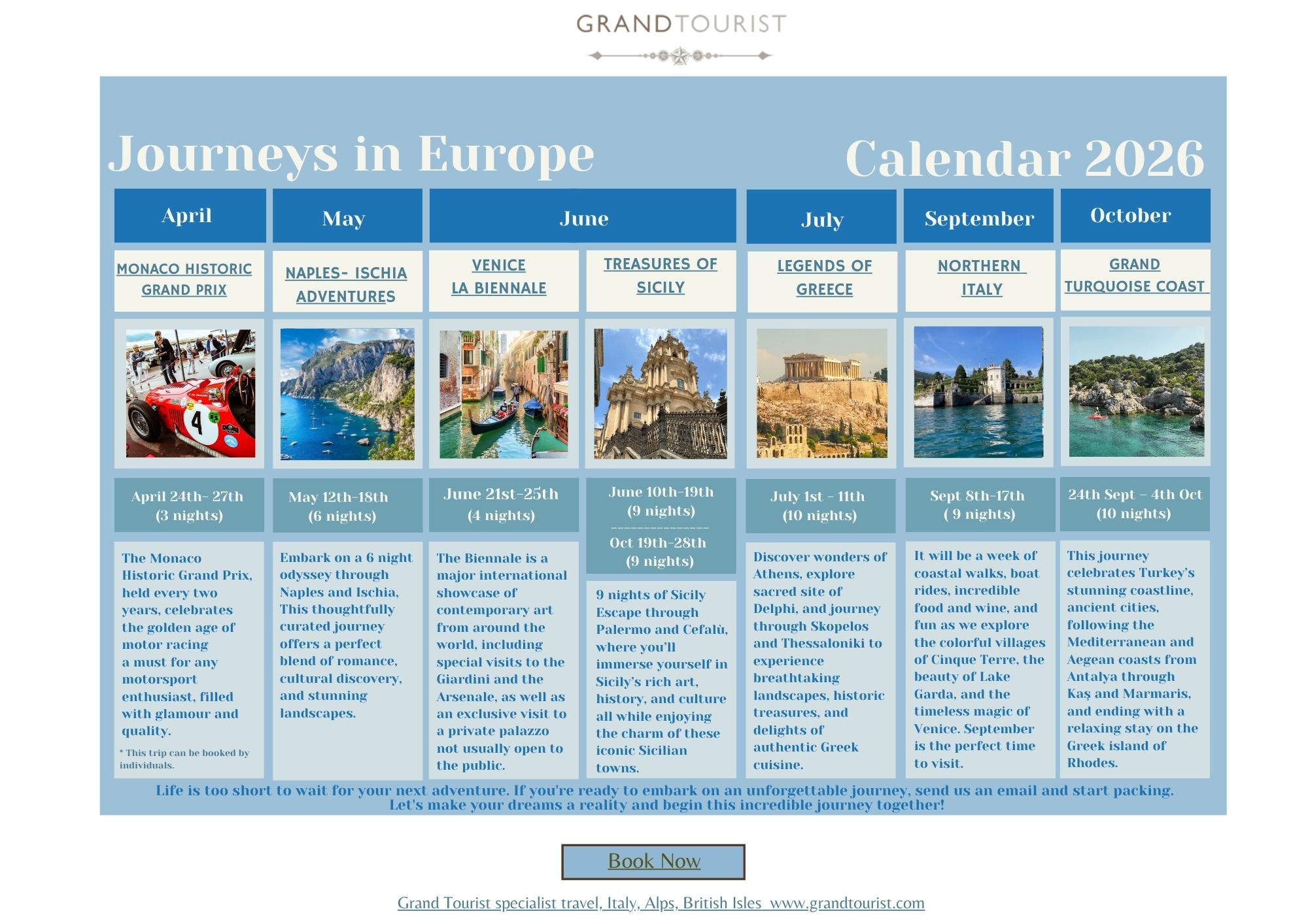 Why not join us for this year’s Venice Biennale or perhaps Northern Italy’s lakes and Cinque Terre villages. Later in the summer we’ll be on Turkiye’s Turquoise Coast or perhaos the Legends of Greece, including fabulous Delphi is more up your street.