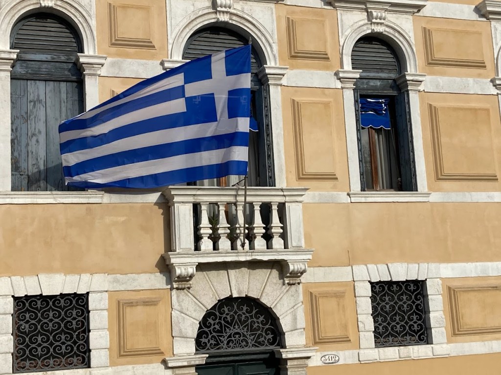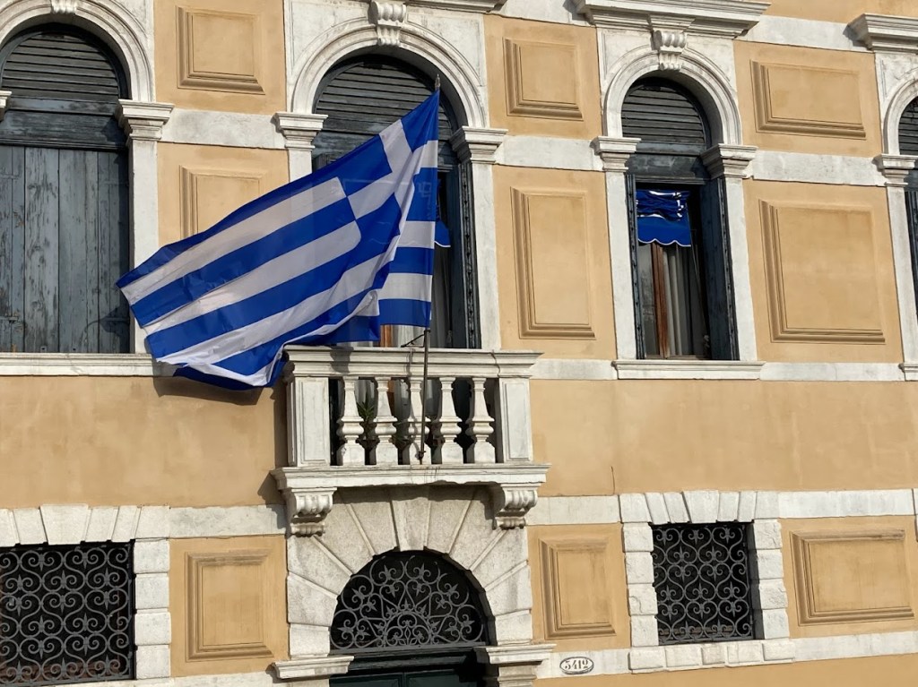 A GREEK community grew up in Venice, just inland from the Riva degli Schiavoni. They built their own church here San Giorgio dei Greci, which still exists to this day. The church is an elegant white stone building with a magnificent campanile or bell tower that leans at a jaunty angle, a bit like the Leaning Tower of Pisa. Next door to the church is the former Bishop’s residence and the Hellenic Institute, where you can visit the Greek Museum and Library. You can also sign up for Greek language classes. To complete the picture the blue and white stripes of the Greek flag billow in the breeze.
