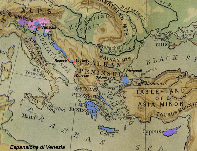 Venice expanded her territories on both the mainland and along the coast of the Adriatic Sea. Key territories controlled by the Venetians included: