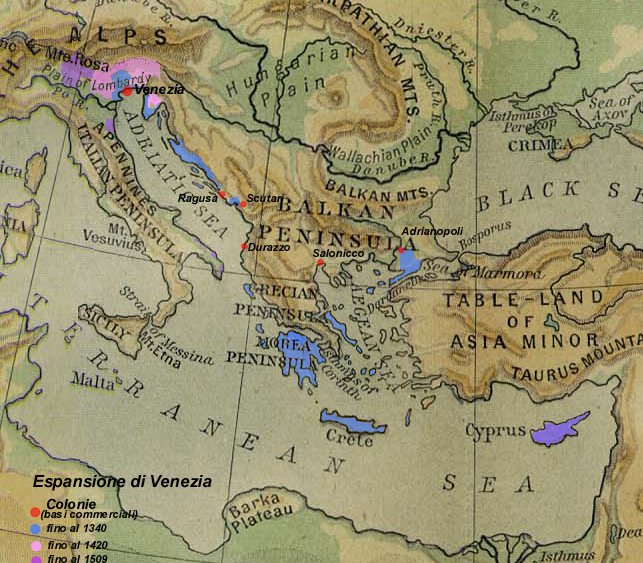 Venice – territories 15th century (left). The Venetian lagoon offered a vast, safe anchorage for ships www.educated-traveller.com