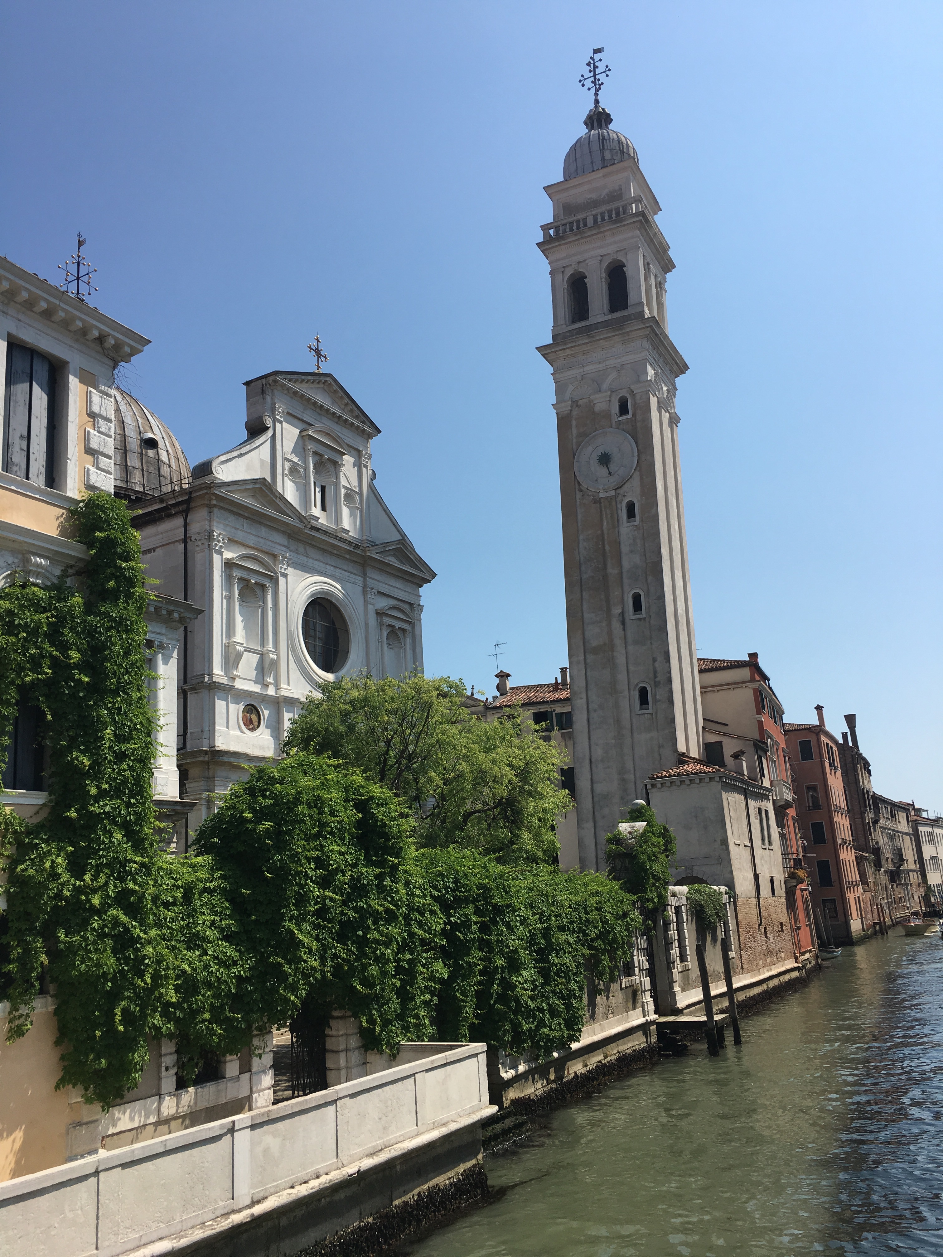 Even before the fall of Constantinople to the Ottomans in 1453 the Greek community in Venice was growing steadily. The Venetians dominated the seas in the Adriatic and Ionian Seas. There was constant movement of ships, cargoes and people. Venice controlled the island of Crete from 1205, Corfu from 1386 and Cyprus from 1489. By the end of the 15th century the Greek community in Venice numbered at least 4000 people. In 1498 the Greek population were given permission to create their own ‘scuola’ or guild hall as a meeting place and centre for preserving Greek culture and heritage. This new building was known as The Scuola dei Greci. The Scuola funded the construction of the church of San Giorgio dei Greci which is easily identified today by it’s elegant and rather tilted, leaning tower.