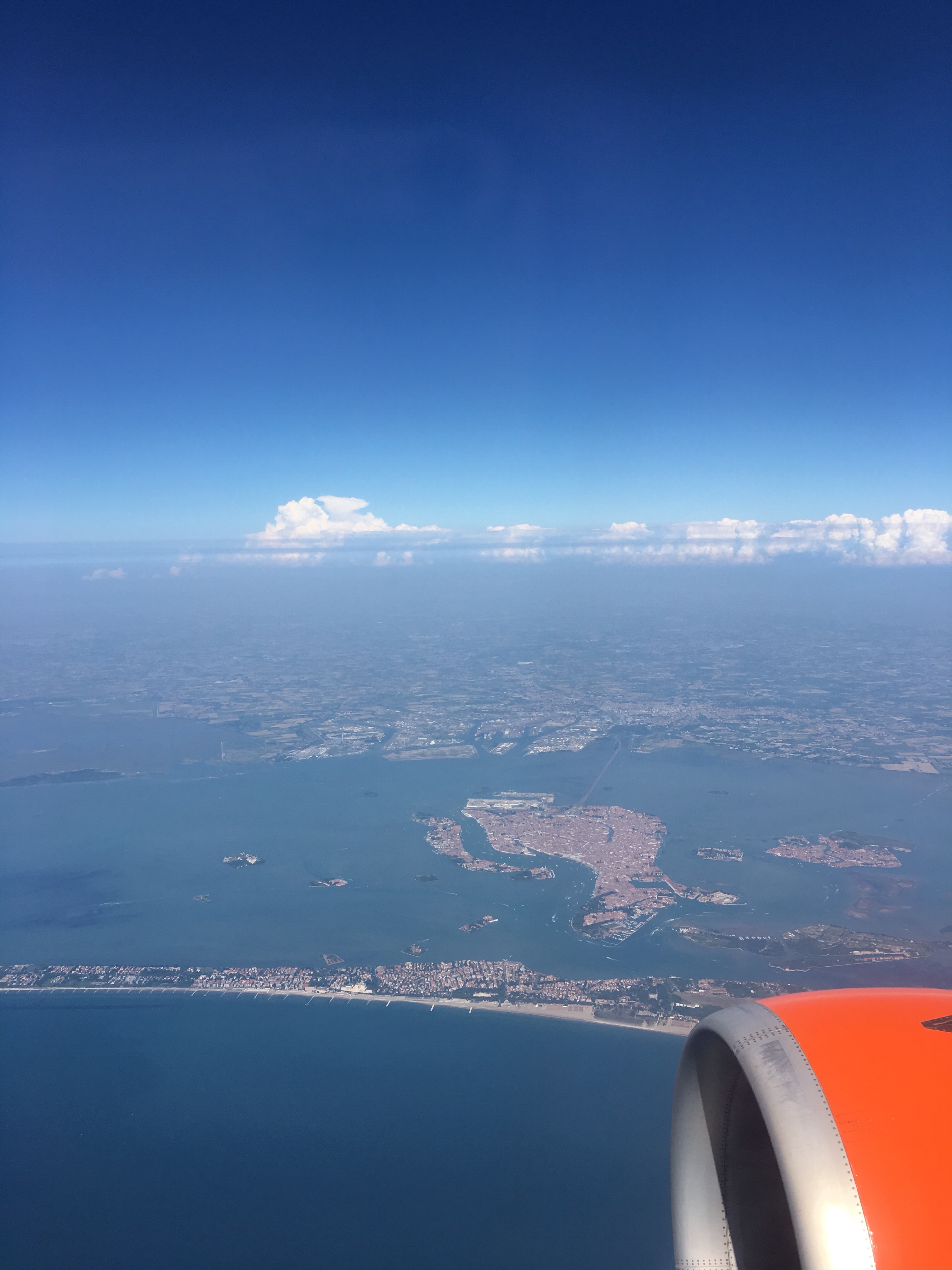 It’s interesting to compare the 1930s map of Venice with this photo that I took last year. The lagoon of Venice fills the frame. The city of Venice is centre stage. You can see the Lido of Venice, in the foreground protecting the lagoon from the Adriatic Sea. The Lido is the beach resort of Venice, it is fringed by a sandy beach lined with hotels.